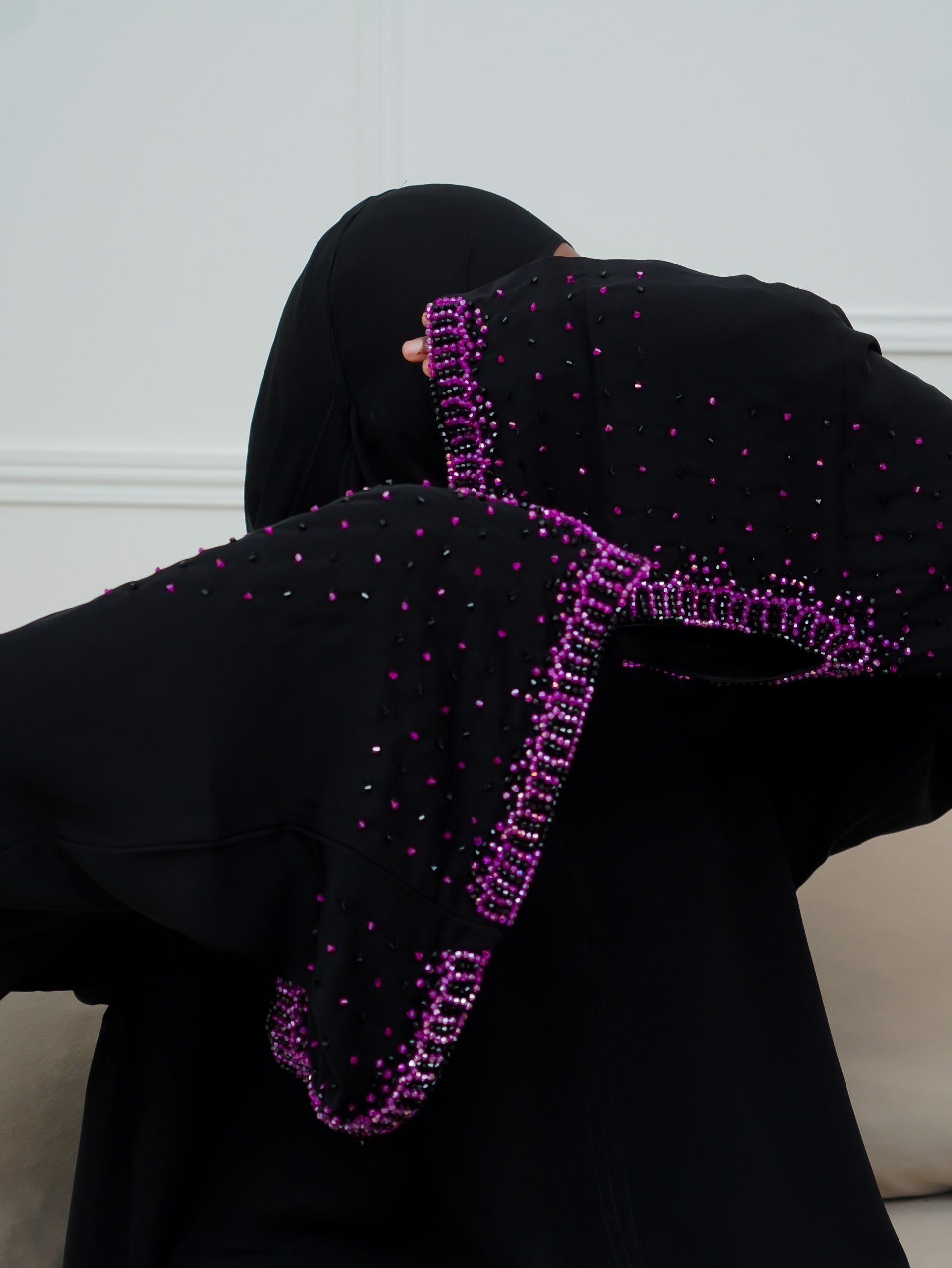 Confectionnée en nida coréen, un tissu reconnu pour sa fluidité et son tombé élégant, cette abaya séduit par sa coupe droite raffinée et ses manches tombantes, qui apportent une allure à la fois gracieuse et sophistiquée.